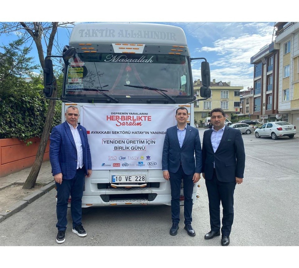 Ayakkabı ve ayakkabı yan sanayi sektörü olarak depremden etkilenen meslektaşlarımıza ulaştırılmak üzere başlattığımız ‘Makine -Teçhizat ve Nakdi Yardım Kampanyası’ kapsamında çoğunluğu sıfır olan makinelerin yanında bağışlanan ikinci el makinelerin de gerekli tüm bakımları tarafımızca yaptırılarak, ilk iki tırın sevkiyatı TASEV Vakfımız bünyesiyle bugün gerçekleşmiştir.