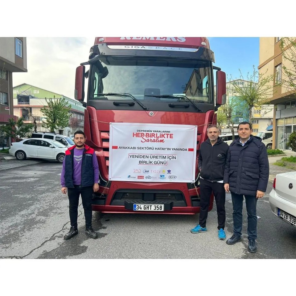 Ayakkabı sektörümüzün tüm paydaşlarıyla birlikte depremden etkilenen meslektaşlarımıza ulaştırılmak üzere başlattığımız Yardım Kampanyamız kapsamında depremde en çok zarar gören Hatay’daki üreticilerimiz için hazırlanan üçüncü tırımız da yola çıktı.